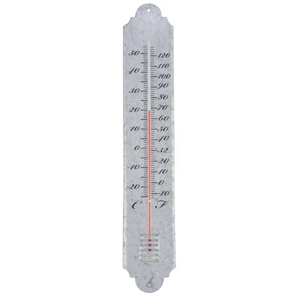 Deze oud zinken thermometer straalt eenvoud uit waardoor deze op eender welke plaats mooi zal hangen. Zowel buiten en binnen geeft hij de temperatuur aan in graden Celsius (-25°C tot + 55°C) en ook in Farhenheit.