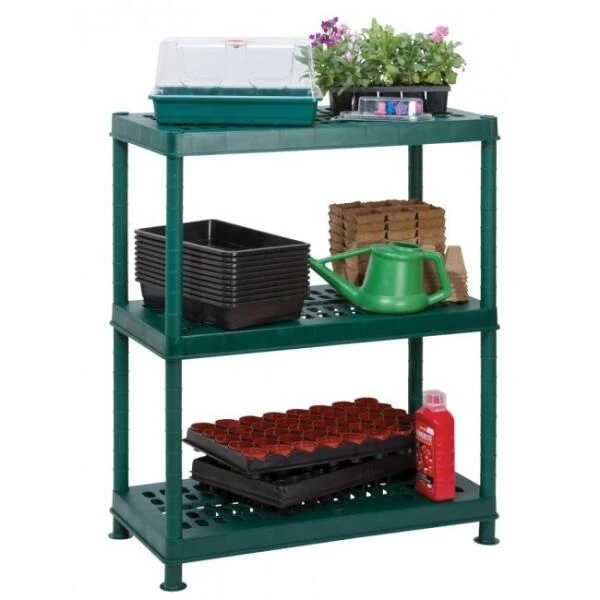 Heavy duty opbergrek voor in de tuinkas, het tuinhuis of de garage. Heavy duty betekent dat elk van de drie legboorden tot 50 kg belast kan worden. De legboorden zijn geperforeerd en dus ook geventileerd waardoor ze een meerwaarde hebben in de tuinkas.