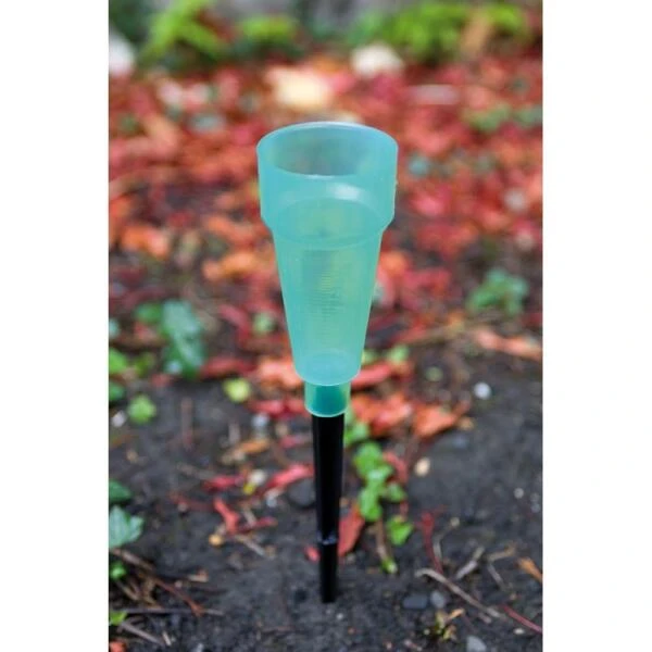 Een pluviometer of regenmeter is een eenvoudig systeem om na te gaan hoeveel neerslag er valt per vierkante meter. Eén maatstreepje komt overeen met 1 liter water per vierkante meter. Deze opvangbeker van kunststof wordt geleverd met een grondpin.