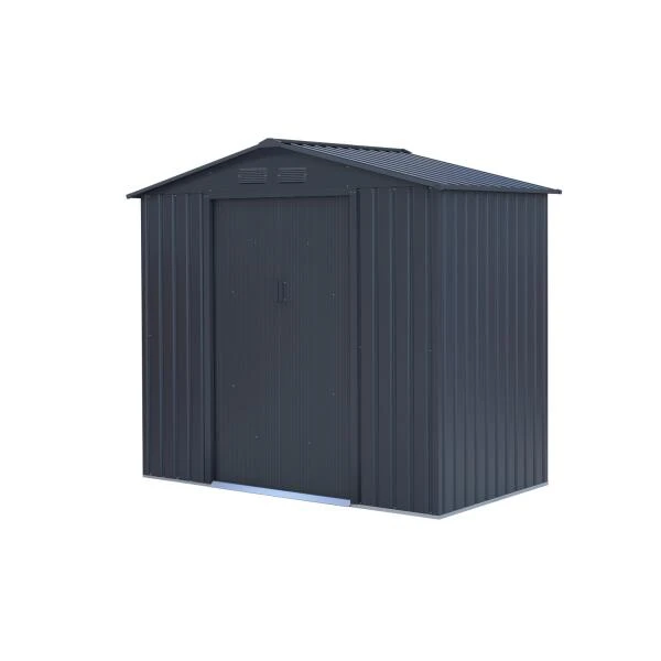 Het Archer tuinhuis van Sinolily is voorzien van een dubbele schuifdeur aan de voorzijde. De wanden, alsook het dak zijn opgebouwd uit roestvrij staal, afgewerkt met een kwalitatieve coating in antraciet. Dit maakt het metalen tuinhuis onderhoudsarm. Het zadeldak helt licht over waardoor het niet binnen regent.