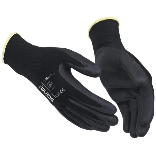 Dunne werkhandschoen met een in microporeus nitrilschuim gecoate handpalm. Dit zorgt voor een zeer goede droge grip en beschermt tegen vocht.