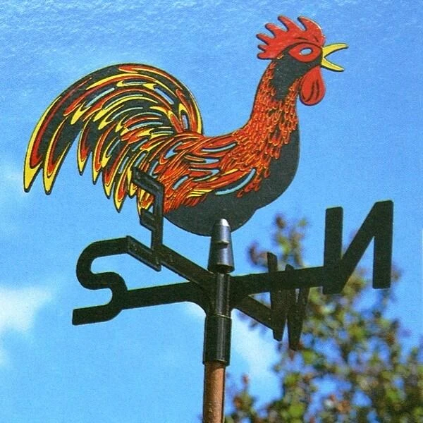 Windhaan in kunststof. Weerbestendig en zo goed als onbreekbaar, draait zich naar de windrichting. Inclusief de bevestigingsmaterialen om de windwijzer te plaatsen op een ronde (borstel)steel.